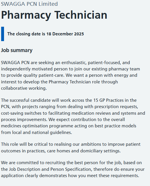 Pharmacy Technician Vacancy